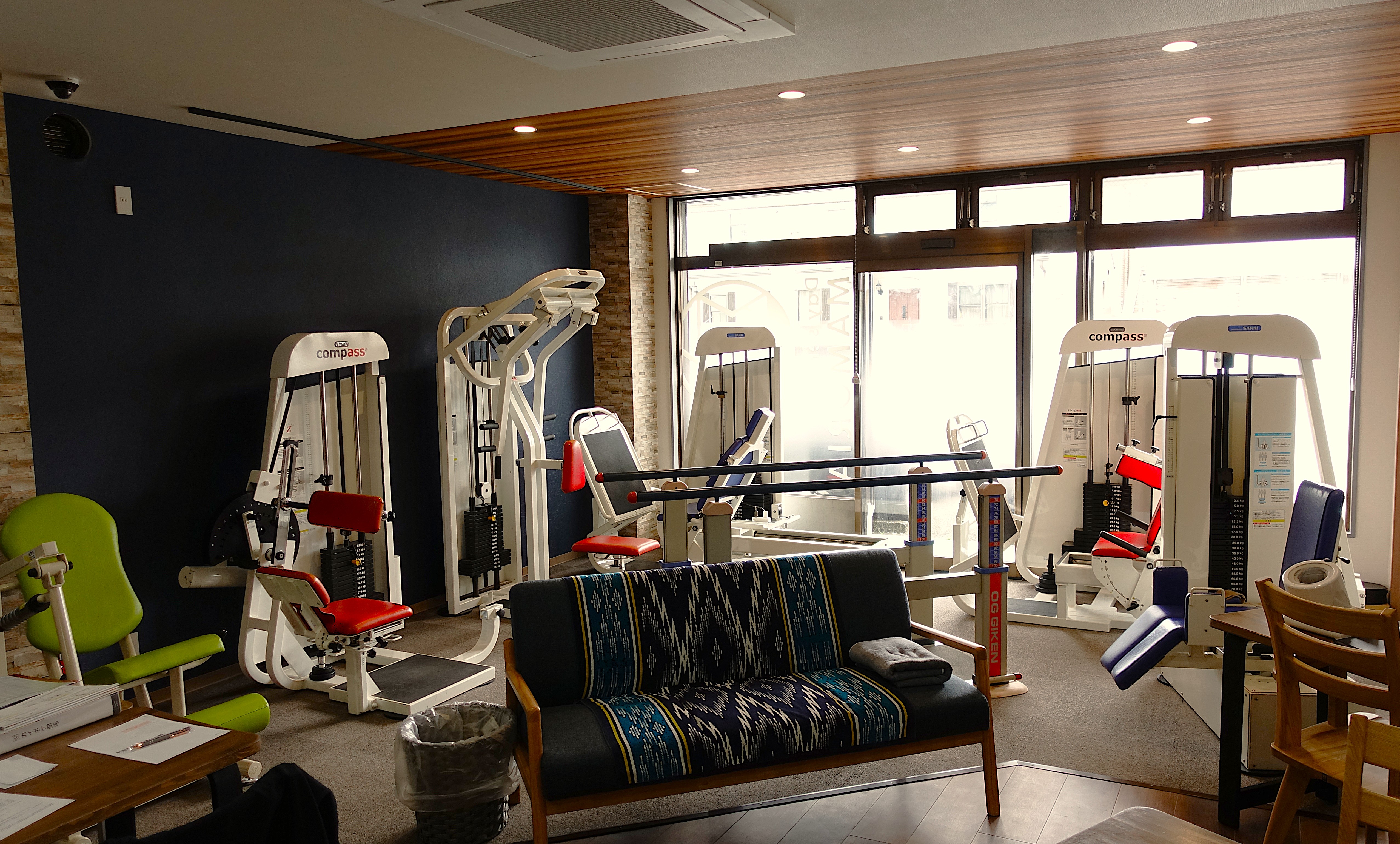 - 機能訓練やリハビリに特化した各種マシンがあります。一人ひとりにあった運動をサポートします。日常生活の体力維持・向上のため高齢者向けの機能やレクレーションをしたりするスペースです。