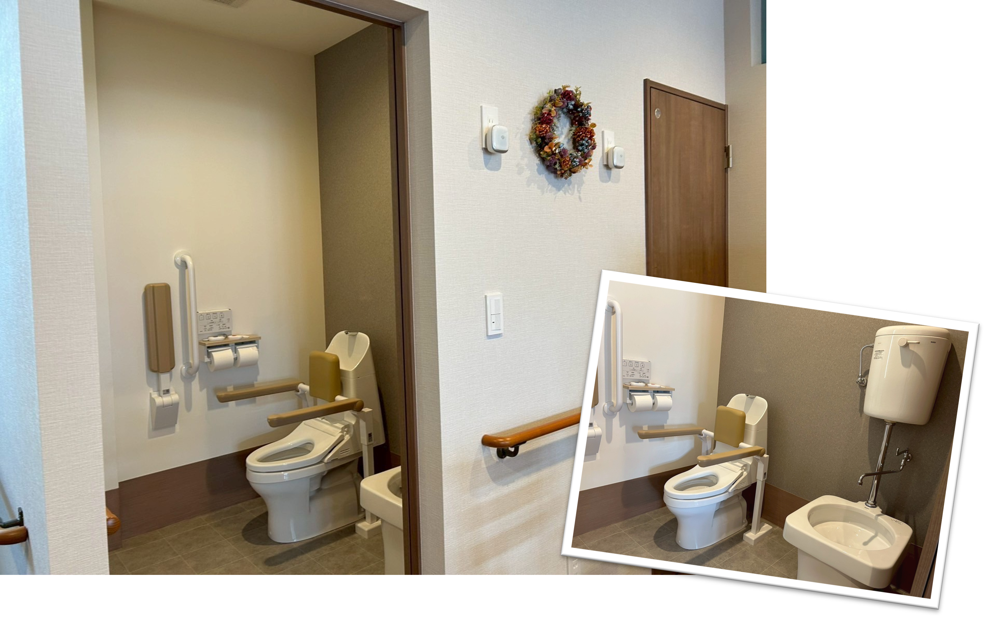 - トイレは2か所あり、車いすでも使用できる温水式のトイレを設置しています。各トイレにはナースコールも設置しているので、安心♪ナースステーションのすぐ後ろにあるので、急な呼び出しにもすぐに対処できます。